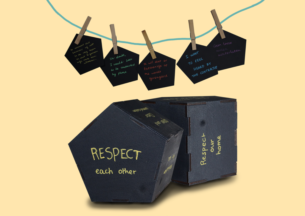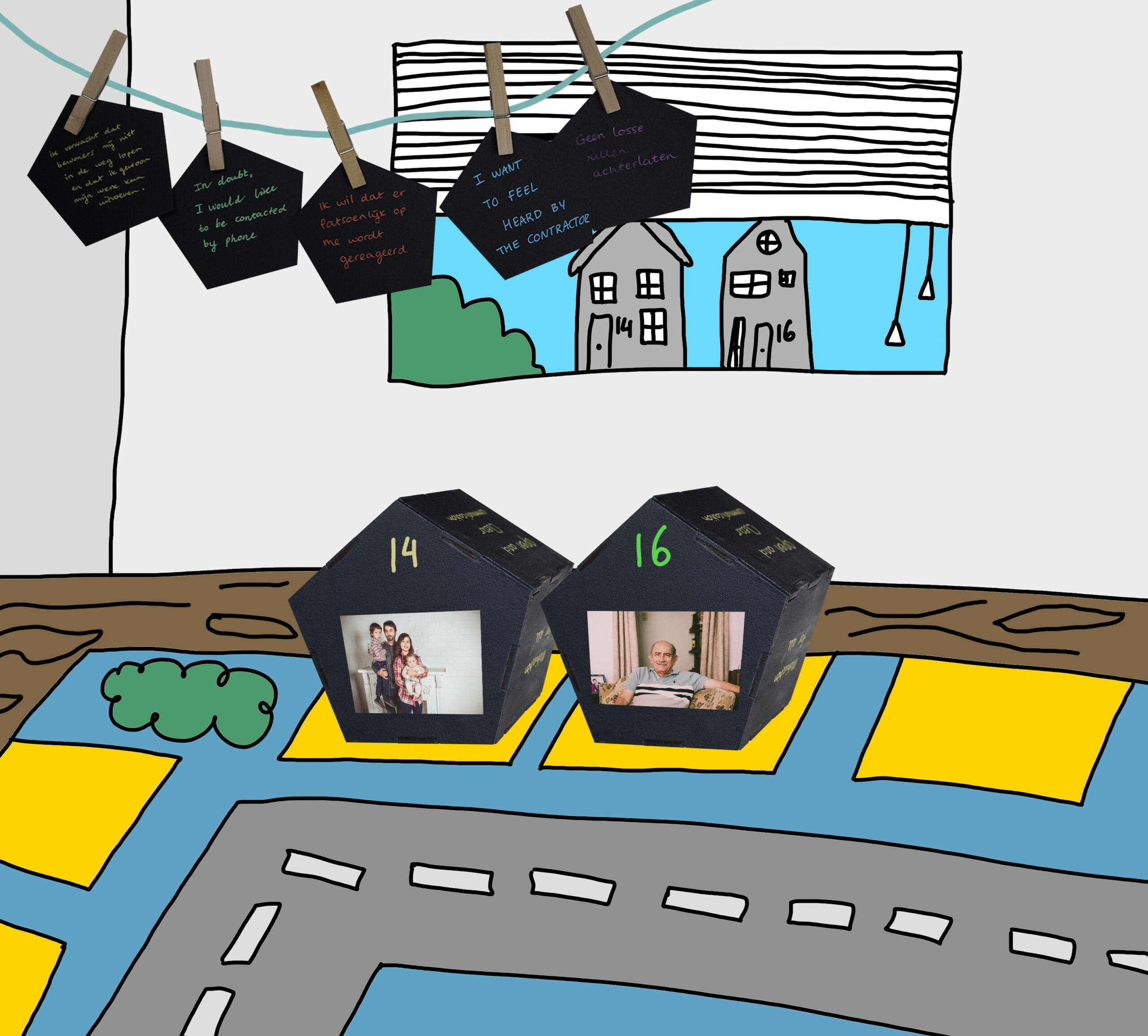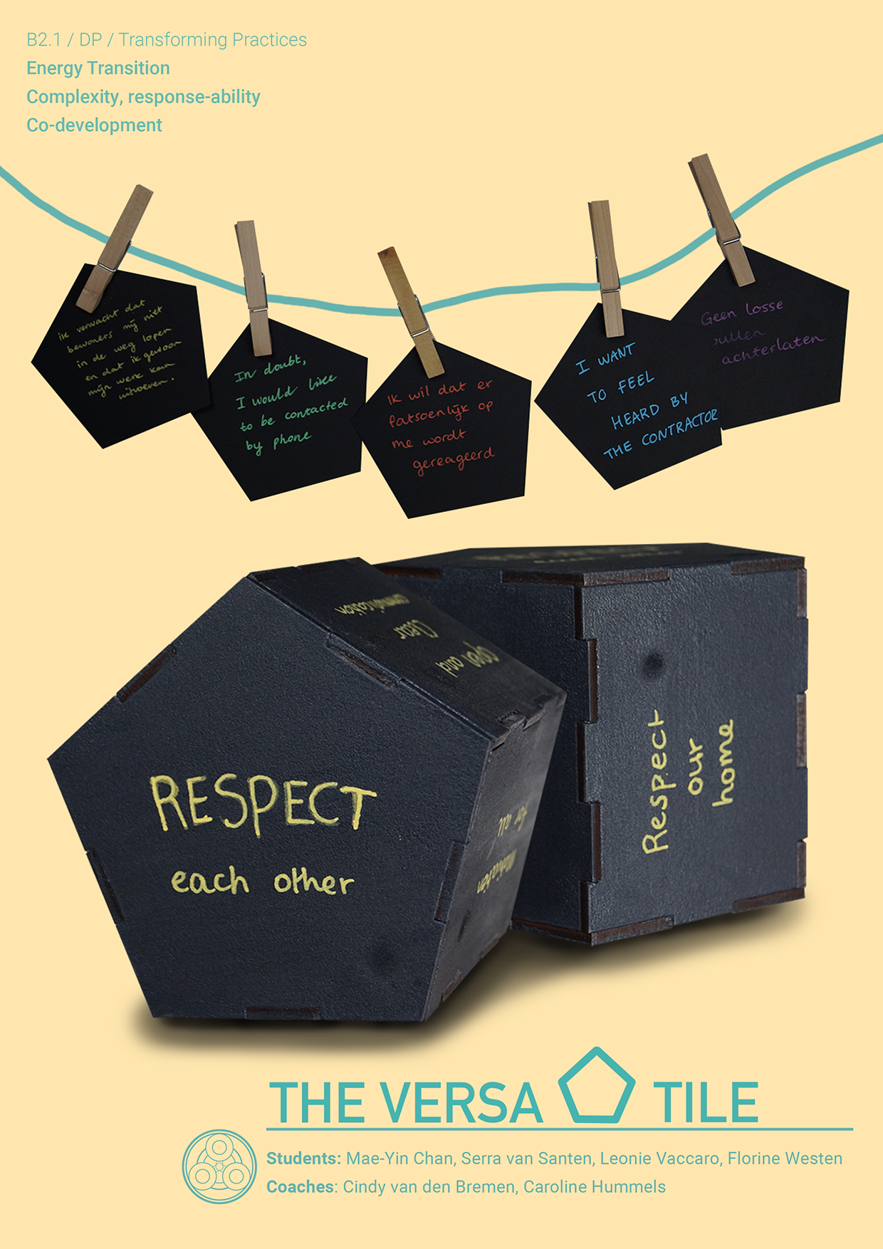 Within energy transition renovation projects involving speckled property (private property in a neighborhood of a housing-corporation), stakeholders often experience tense relationships. The VersaTile is a tool and method which allows for tension relief through reflection, communication and expectation management before, during and after renovation projects, resolving issues before they fester. Through meetings and physical traces of meeting agreements, communication is cultivated throughout the project.